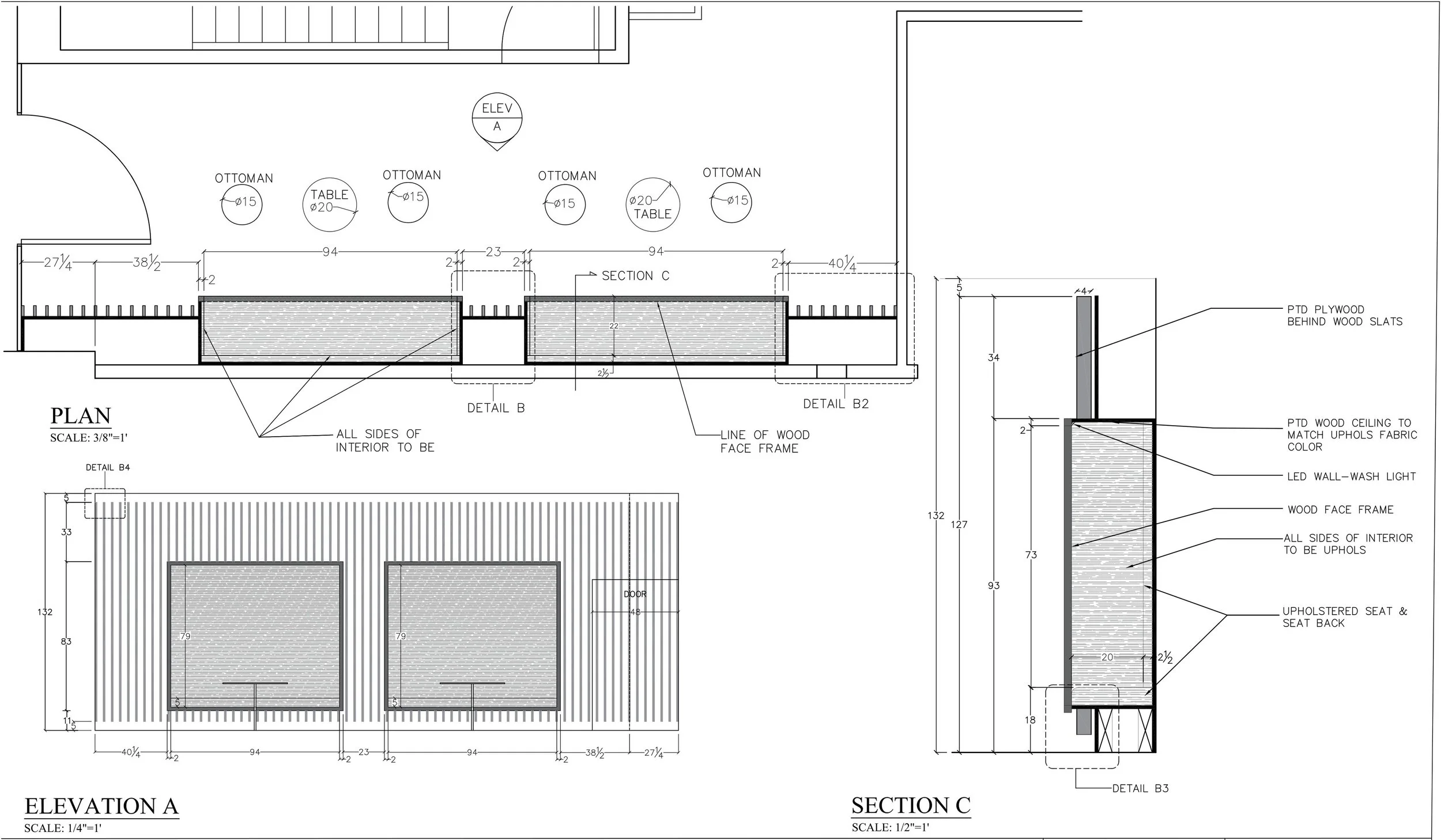 Reception bench shop drawings